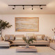 Este kit de riel cuenta con un diseño contemporáneo que se integra perfectamente en cualquier ambiente, ya sea una sala de estar, comedor, recámara, galería de arte, estudio, boutique, despacho u oficina. Su estética limpia y sofisticada eleva la decoración, creando escenas de iluminación focal que resaltan elementos decorativos y áreas específicas de la habitación.